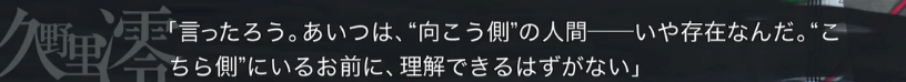 其中最奇妙的是澪電話的對話內容。 男主角提出有這兩個方向以外的答案, 都是非正常人。 右上角寫的正是R11出現過的詞,也就是DID。(Dissociative Identity Disorder) 他心中的他對她說話-> タク是她心中的幻想人格之意?