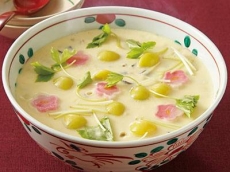 NHK食譜: http://www.nhk.or.jp/kurashi/ryouri/recipe/02.html 材料: (3~4人分) ・卵 3コ ・かまぼこ (白) 50g ・鶏ささ身 2本(90g) ・生しいたけ 2枚 ・長芋 50g ・ぎんなん 9コ ・梅麩(ふ) (薄切り) 5枚 *梅の形をした生麩。 ・だし 適量 ---------- 【A】 ・だし カップ2+1/4~3+1/4 ・酒 大さじ1 ・塩 小さじ1 ・うす口しょうゆ 小さじ1 ---------- ・みつば (ザク切り) 少々 ・うす口しょうゆ 小さじ1 ・塩 少々 エネルギー:120kcal *エネルギーは1人分 調理時間40分 作り方